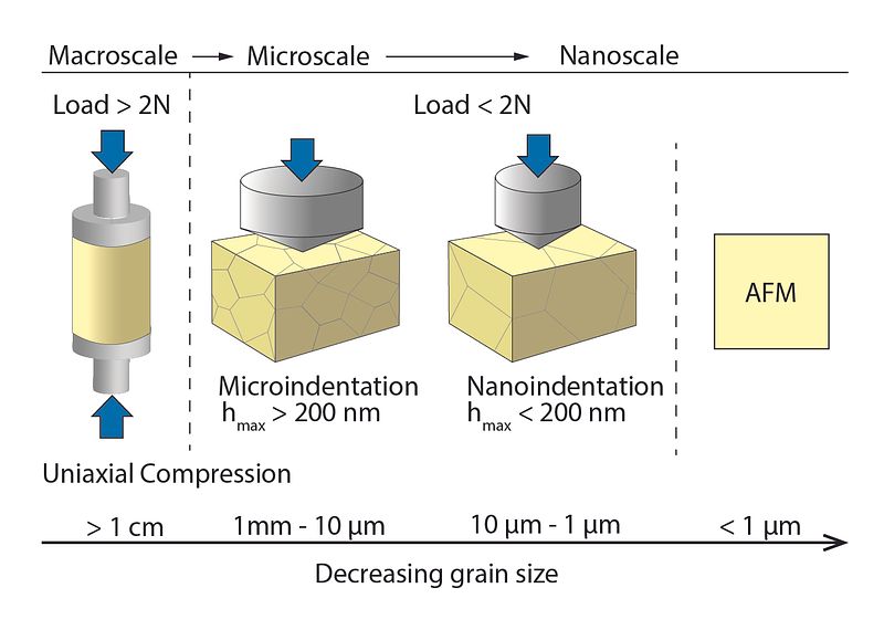 Understanding the dynamics of the lithosphere relies heavily on the scale-dependent rheology of minerals. While quartz, feldspar, and phyllosilicates are the key phases to govern the rheology of the crust and tectonic margins, olivine and other mafic phases control the same in the upper mantle. Phase transition, solid-state substitution, polymorphism, etc. also affect mineral phase rheology. High pressure–temperature deformation tests with natural, synthetic and analog materials have improved our interpretation of the geodynamic state of the lithosphere. However, deforming and studying a single crystal is not easy, because of the scarcity of specimens and laborious sample preparations. Experimental micro- to nanoindentation at room and/or elevated temperatures has proven to be a convenient method over mesoscale compressive testing. Micro- to nanoindentation technique enables higher precision, faster data acquisition and ultra-high resolution (nanoscale) load and displacement. Hardness, elastic moduli, yield stress, fracture toughness, fracture surface energy and rate-dependent creep of mono- or polycrystalline minerals are evaluated using this technique. Here, we present a comprehensive assessment of micro- to nano-mechanics of minerals. We first cover the fundamental theories of instrumented indentation, experimental procedures, pre- and post-indentation interpretations using various existing models followed by a detailed discussion on the application of nanoindentation in understanding the rheology and deformation mechanisms of various minerals commonly occur in the crust and upper mantle. We also address some of the major limitations of indentation tests (e.g., indentation size effect). Finally, we suggest potential future research areas in mineral rheology using instrumented indentation.